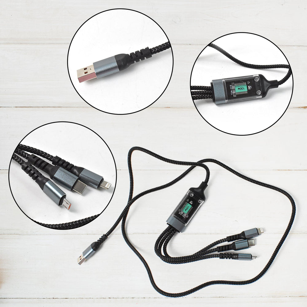 3-in-1 Super Fast Charging Cable 100w, Multifunctional Convenient Super Fast Charging Cable - Nylon Braided Cord, Silicone Zinc Alloy 3 Head Charging Cable