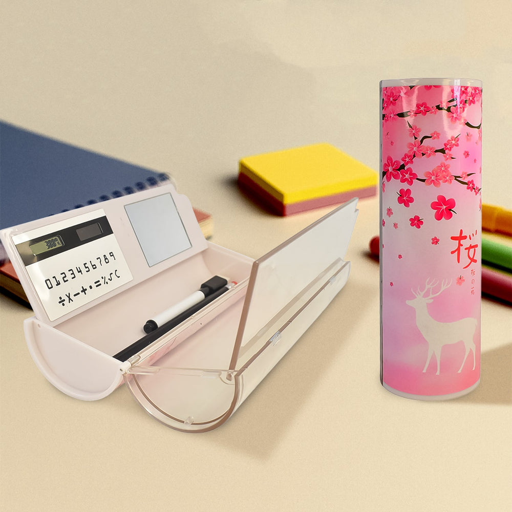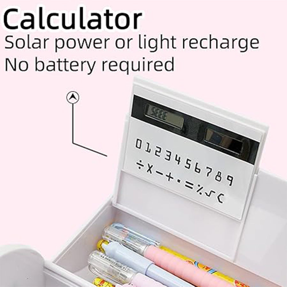 6 in 1 Compass Box, Geometry Box 2 Compartment, Pencil Box with 1 Calculator, 1 Mirror, 2 in 1 Marker Pen With Eraser for Boys Art Plastic Pencil Box for Girls and Boys (1 Set)