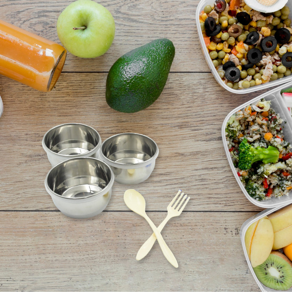 5773 6In1 Tiffin Box-Lunch Box | 3 Stainless Steel Containers | Plastic lid Box | Spoon & Fork /Plastic Bottle | Insulated Fabric Bag | Leak Proof | Microwave Safe for Office, College and School for Men, Women (6 pcs)