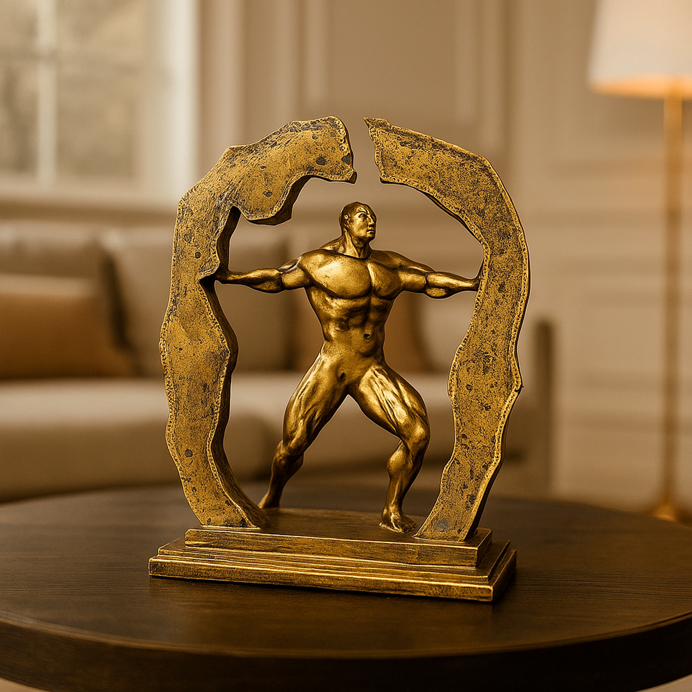 This Golden Strength showpiece feels powerful and refined. The golden metallic finish catches the light, and the abstract “muscle breaking free of stone” design adds character without overwhelming my shelf. A bold yet tasteful piece that motivates every time I see it.