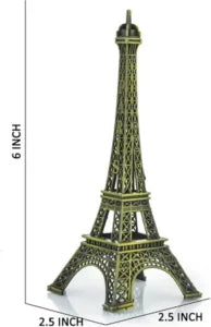 An antique finish metal Eiffel Tower replica typically refers to a decorative model of the iconic Parisian landmark, crafted from metal and treated to appear aged or weathered. This finish gives the piece a vintage aesthetic, often with a slightly darkened or tarnished look, simulating the appearance of a well loved or antique object. The detailed design replicates the actual Eiffel Tower, making it a popular decorative item for homes, offices, or as a gift.