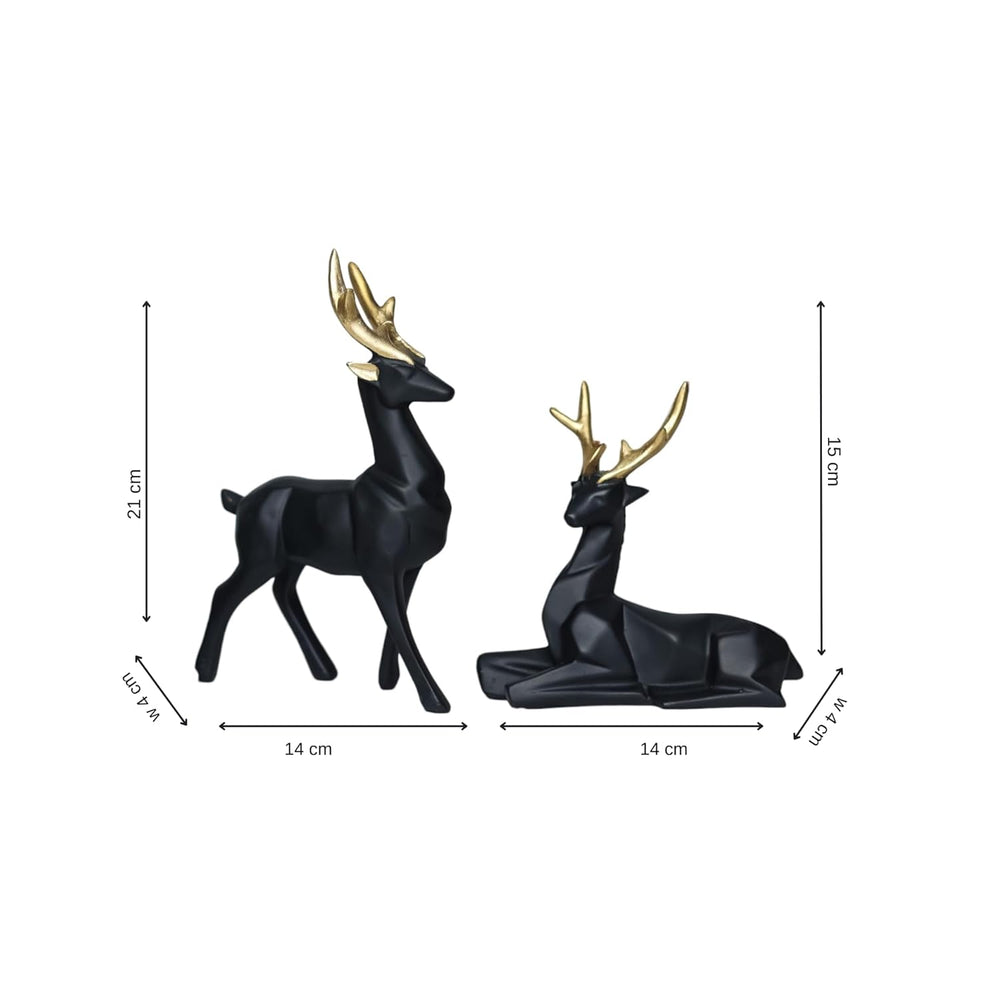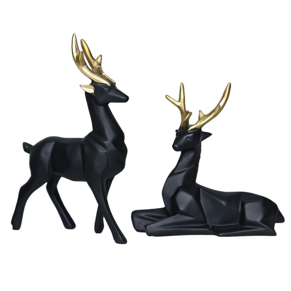 The sleek black finish gives these deer statues a modern and luxurious appeal, making them a perfect addition to contemporary and traditional decor alike. Made from high quality resin, these showpieces ensure durability while maintaining their refined appearance over time.Ideal for living rooms, bedrooms, or office spaces, this deer set not only enhances the aesthetic of your space but also brings positive energy and elegance. It s a thoughtful gift choice for housewarmings, weddings, or festive occasions, symbolizing luck and harmony.