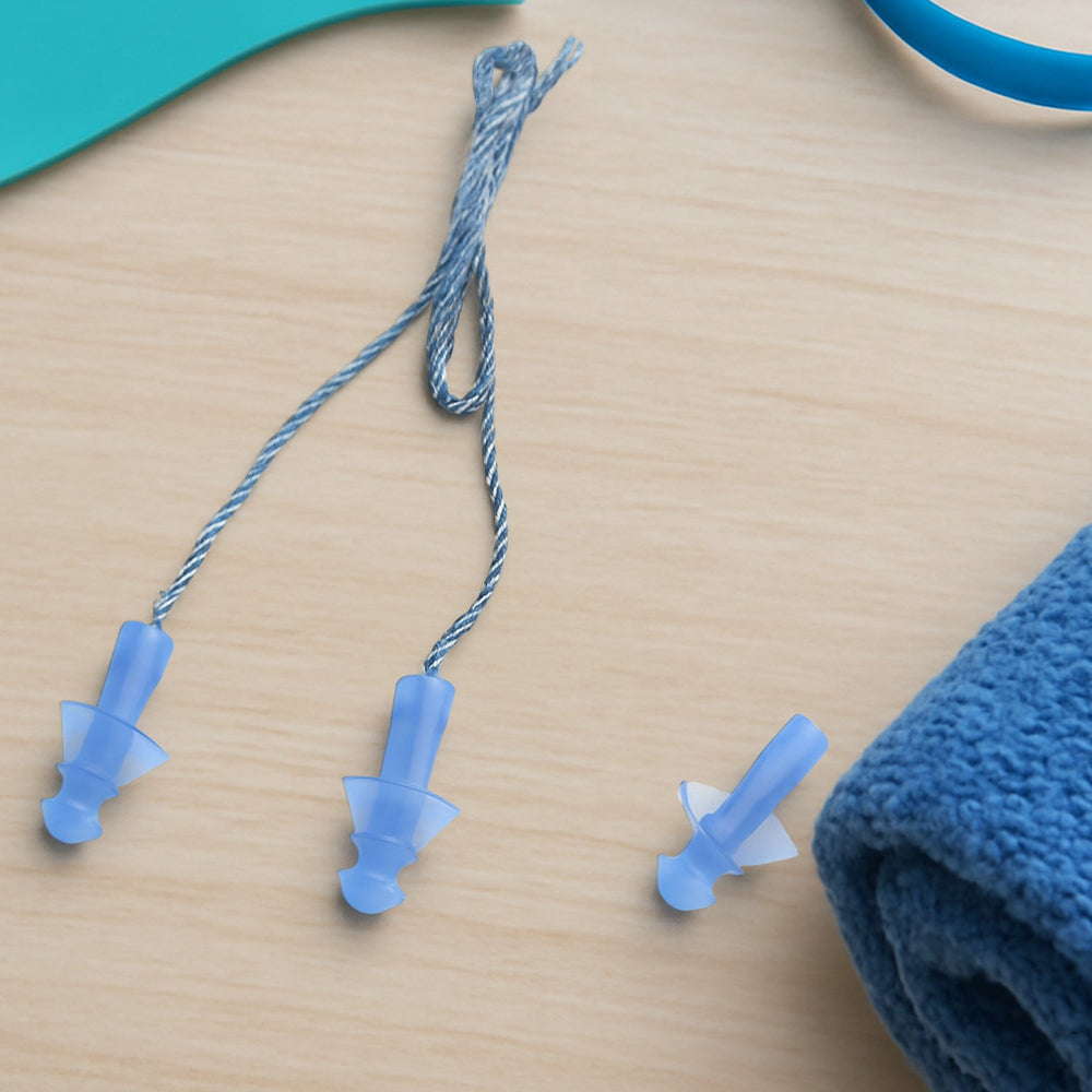 Soft Silicone Ear Plugs Hearing Protection Christmas Tree Shape Reusable Earplug with Cord Noise Cancelling for Sleeping, Shooting, Stretchy String Swim Swimming Earplugs (2 Pc Set / With 1 Extra Ear Plugs)