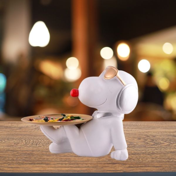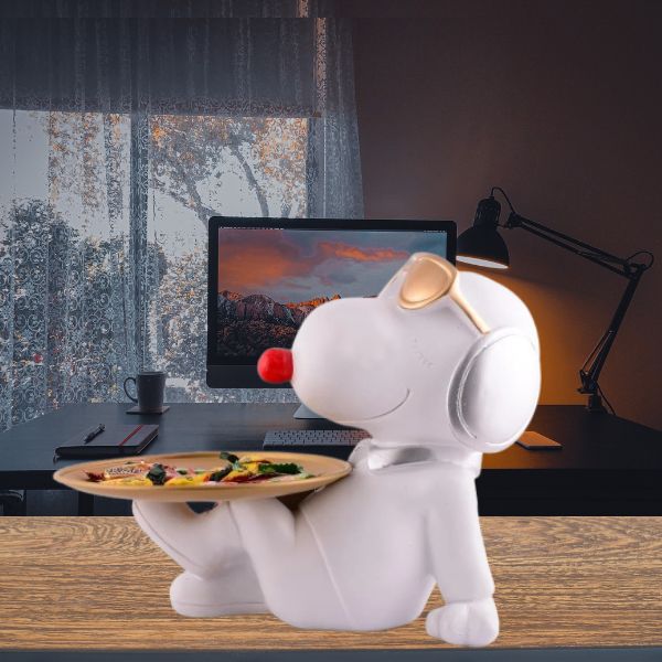 Add a dash of fun and creativity to your home with this White Dog Platter Decor Showpiece. Crafted from high quality white resin, this quirky dog figurine features a playful design where the dog holds a platter perfect for adding charm and personality to your living room, coffee table, entryway, or office desk. nThis 8 inch decorative showpiece blends functionality with style. Whether used purely for decoration or as a small holder for keys, candies, or trinkets, it brings a delightful twist to modern home d cor. Its lighthearted design also makes it a fantastic gift for dog lovers, housewarmings, birthdays, or festive occasions.