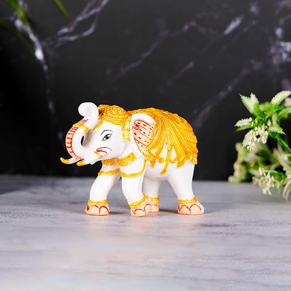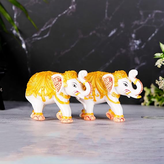 Such a beautiful addition to my living room! The modern style white and golden elephant statue blends perfectly with my decor. The details are impressive, and it brings an elegant vibe to the space.