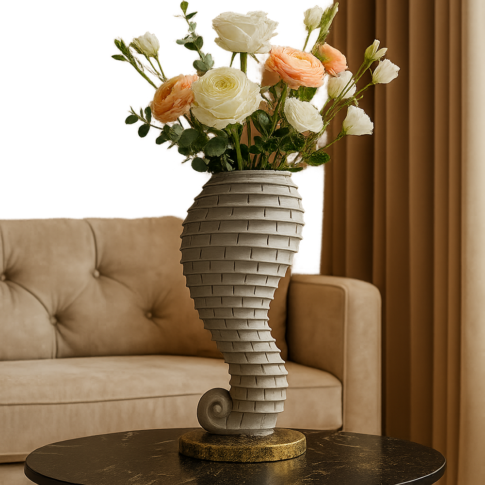 The Ganesha Trunk Design Vase combines spirituality with modern elegance. This unique vase is formed from high-quality polyresin and takes inspiration from the trunk of Lord Ganesha (Sunda). Therefore, it represents prosperity, wisdom, and positive energy. Its contemporary abstract spiral form and textured finish make it a stylish and distinctive piece of décor to brighten any setting in homes, offices, and spiritual spaces alike.