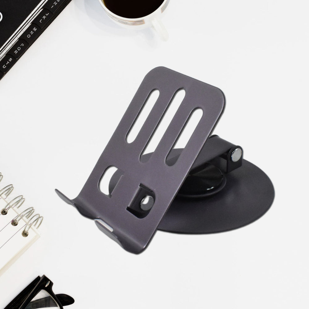 Foldable Metal Mobile Stand 360° Rotatable Mobile Stand Multiple Height & Angle Adjustments, Stable Metallic Round Base Weight of Any Phone (1 Pc)