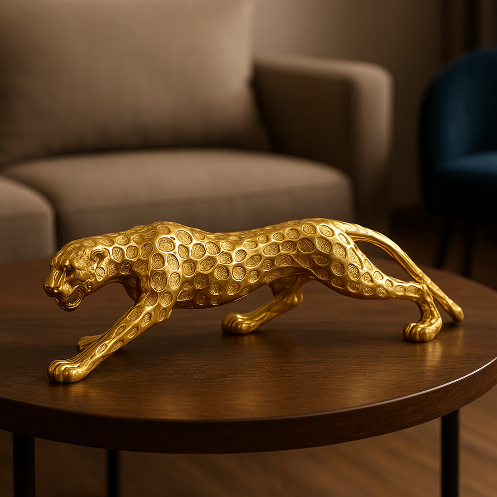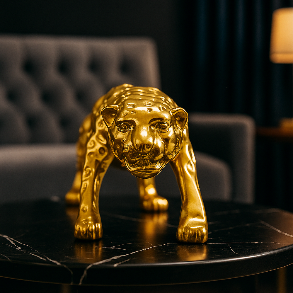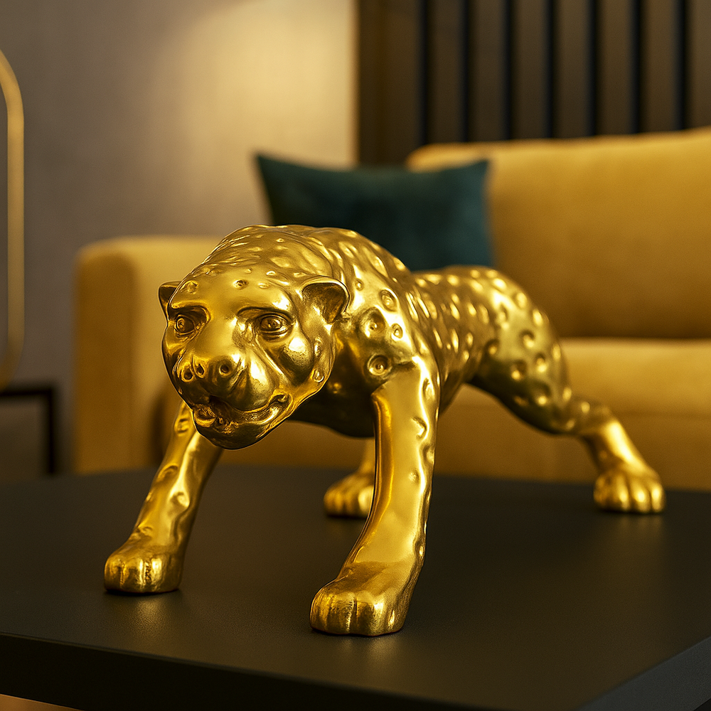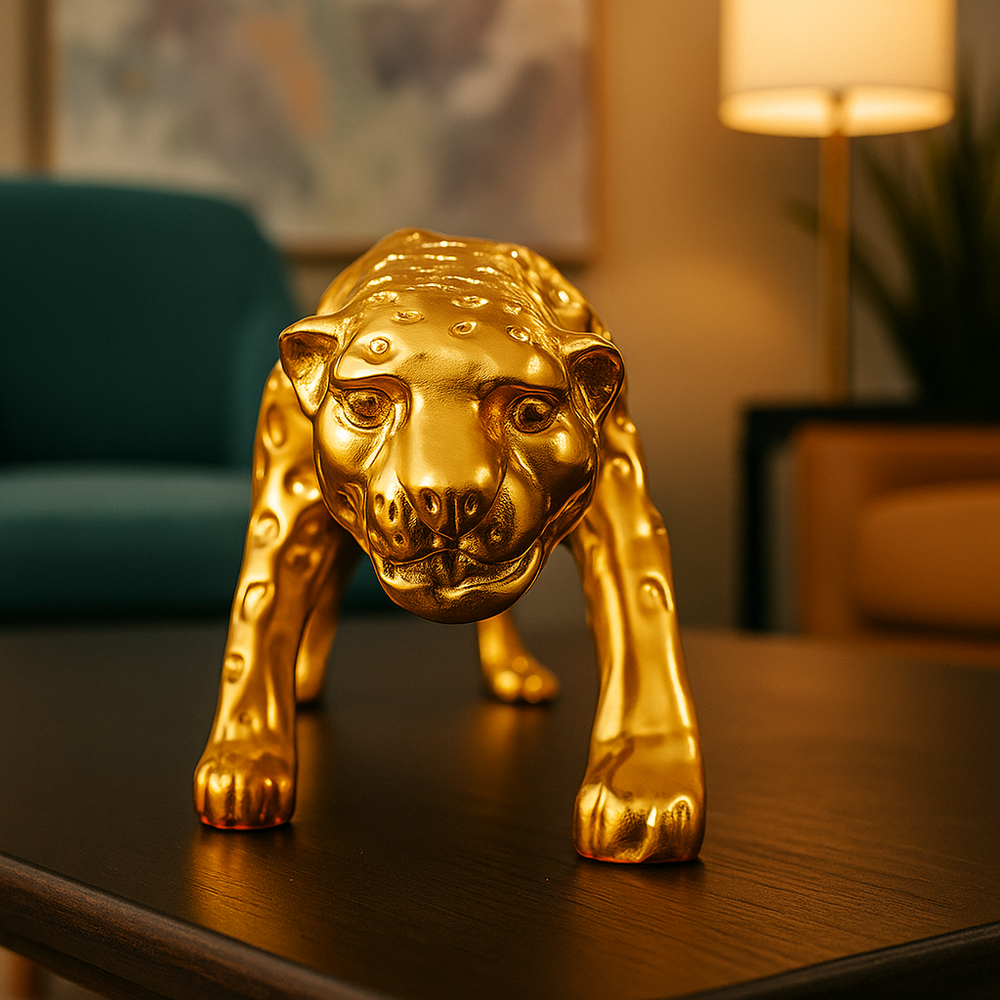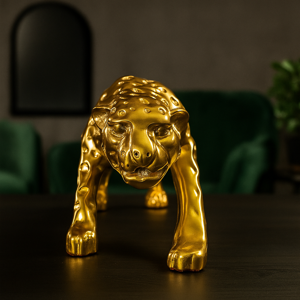 Bring bold energy and fierce elegance into your home with this powerful Golden Panther Showpiece. Crafted to perfection and infused with rich metallic gold plating, this figurine represents the raw power, strength, and regal beauty of the panther. Whether in your living room, office, or lounge, this beautiful animal decor is a stunning focal point, and it will draw the attention.
