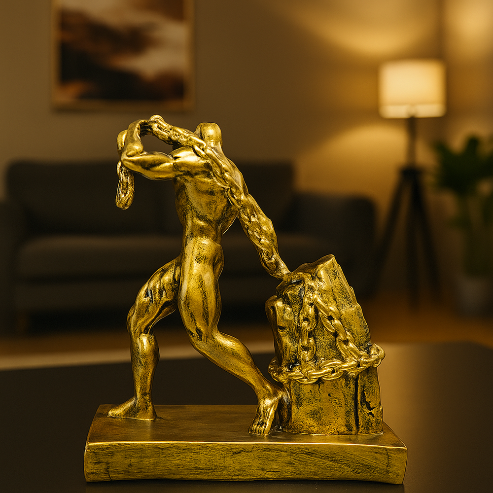 I recently purchased the Golden Muscle Man Statue and it looks absolutely stunning in my home. The golden finish and bold design instantly uplift the atmosphere and give my space a unique, powerful vibe. The detailing on the muscles and chains is impressive, and it truly feels like a symbol of strength and motivation. It’s a perfect decorative piece that stands out and has become one of my favorite additions to my home decor.