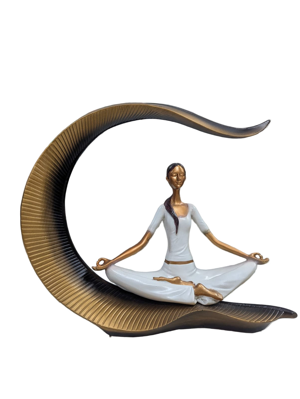 This beautiful Yoga Lady Sculpture encapsulates balance, grace, and mindfulness. Presented in a silhouette with a beautiful gold palette, the backing is an arched crescent form. This figurine casts a visual representation of strength and peace of mind with its detailed features and curvy contextures. Made from a solid and beautiful resin, it also exudes beautiful vibes when paired in wellness-inspired characteristics in your home décor collection.