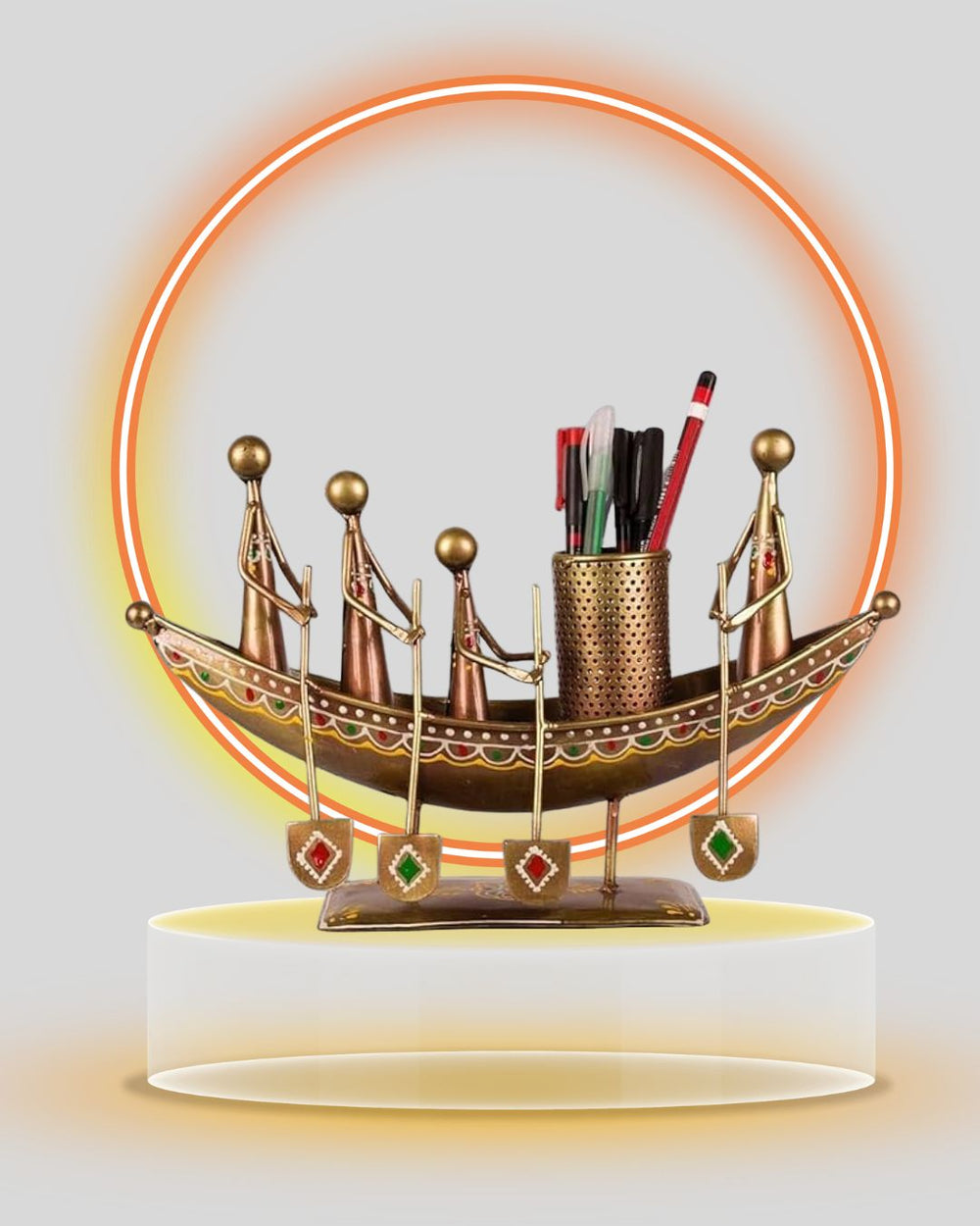 Add a touch of traditional elegance to your workspace with this beautifully handcrafted Boat Shape Pen Pencil Holder. Designed in the shape of a charming wooden boat, this organizer is perfect for holding pens, pencils, markers, and other small stationery items. nCrafted by skilled artisans using high quality wood and natural finishes, it combines functionality with aesthetic appeal. Whether placed on your office desk, study table, or as a decorative piece in your living room, this holder brings an artistic and cultural vibe to any setting.