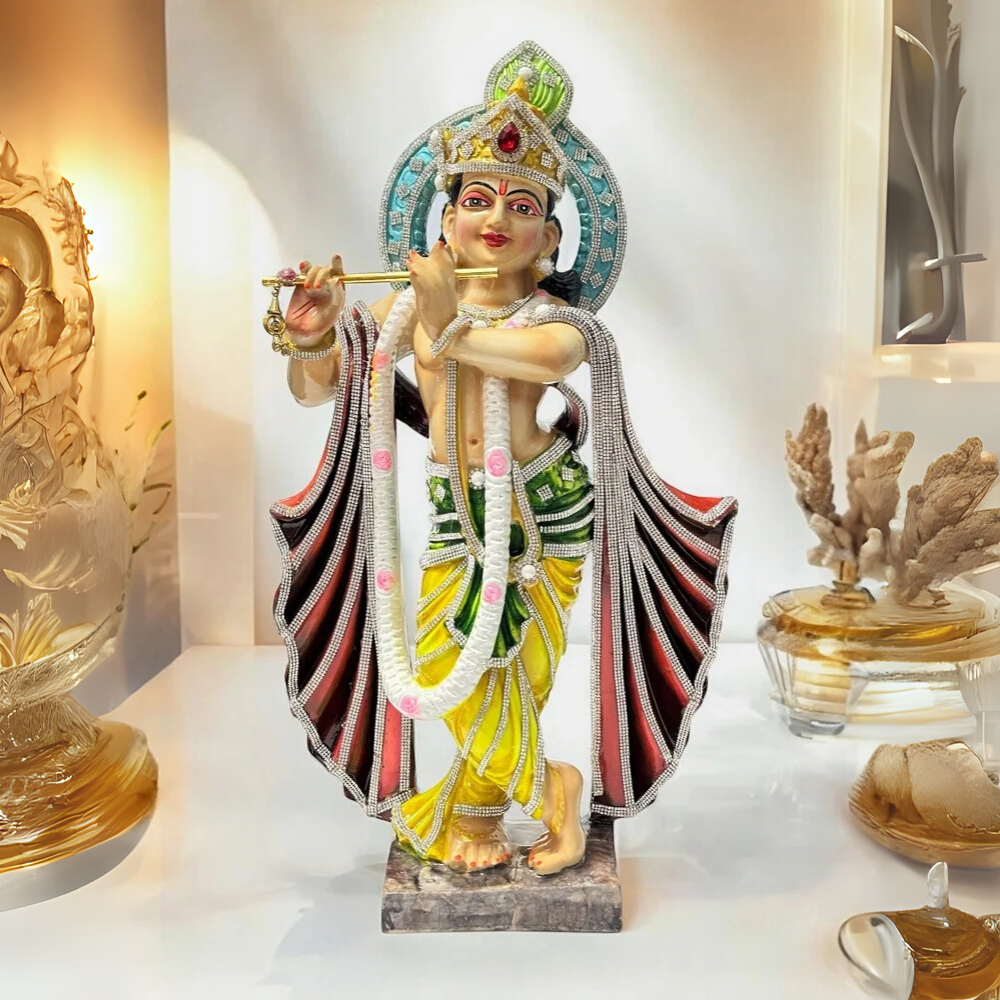 Whether as a decorative element or a devotional idol, this Krishna statue brings divine blessings and beauty to any space. It perfectly combines artistry, spirituality, and traditional aesthetics, making it a timeless piece for your home décor.