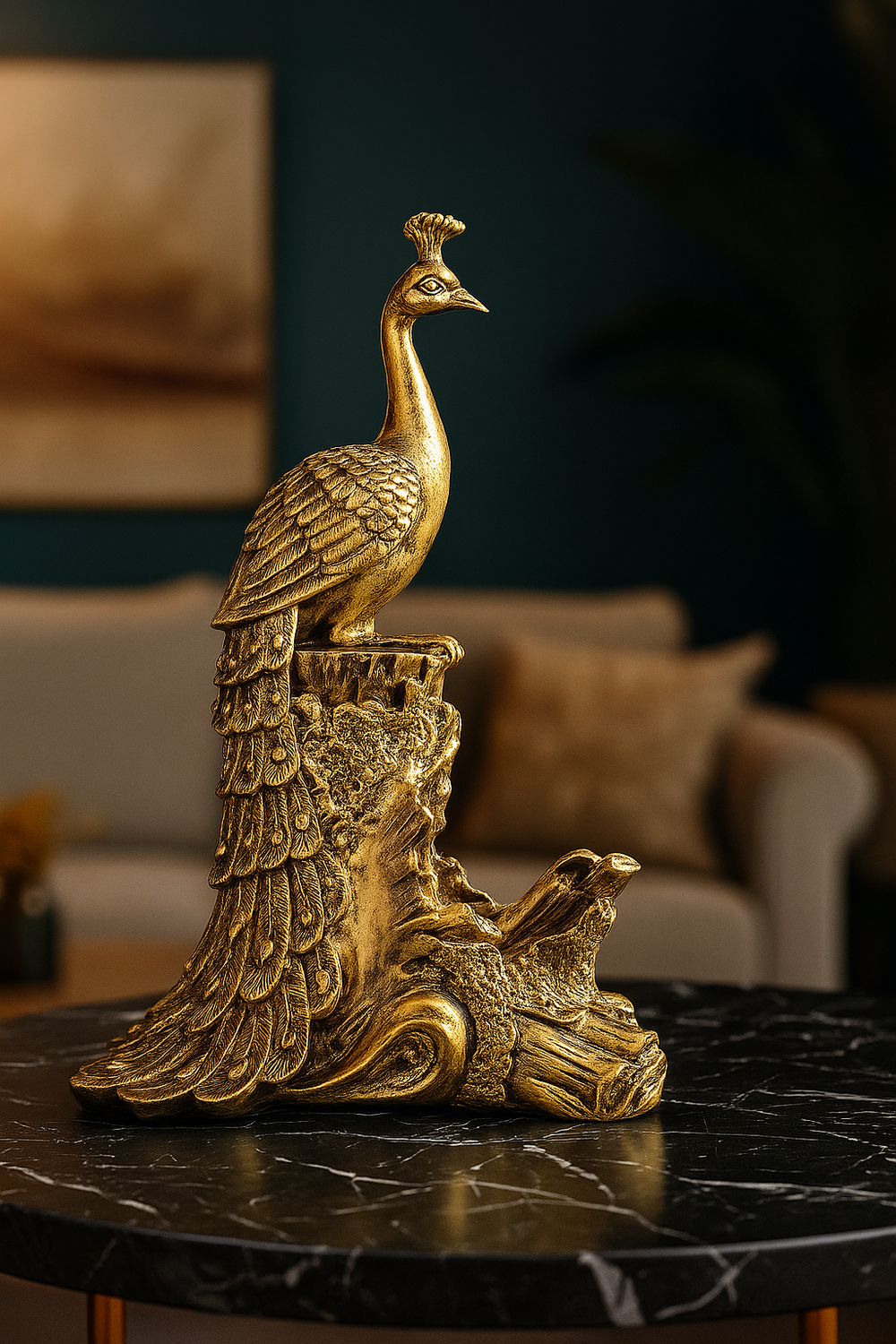 The Golden Peacock Decor Showpiece is a beautiful addition to my home. Its detailed craftsmanship and radiant gold finish make it truly eye-catching. It brings a sense of sophistication and elegance to any space. Highly recommend for those who love classy, refined decor.