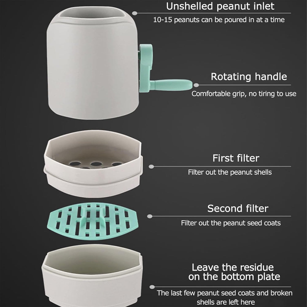 Manual Hand-Crank Peanut Sheller Machine with Built-in Filter Separator and Storage – Portable Household Nut Cracker Tool for Peanuts, Chickpeas, Beans & More