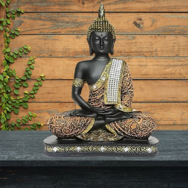 Bring peace, balance, and spiritual elegance to your home with this Meditating Sitting Buddha Idol Statue. Skillfully handcrafted by artisans, this serene idol depicts Lord Buddha in a meditative pose, radiating calmness and inner harmony. nMade from high quality material with fine detailing and a graceful finish, this showpiece is perfect for enhancing the ambiance of your living room, pooja space, meditation area, or office desk. It serves as a reminder of mindfulness and positive energy in any setting. nAn ideal gift for housewarmings, festivals, Diwali, birthdays, or spiritual occasions, this beautiful Buddha statue blends traditional craftsmanship with modern d cor aesthetics.