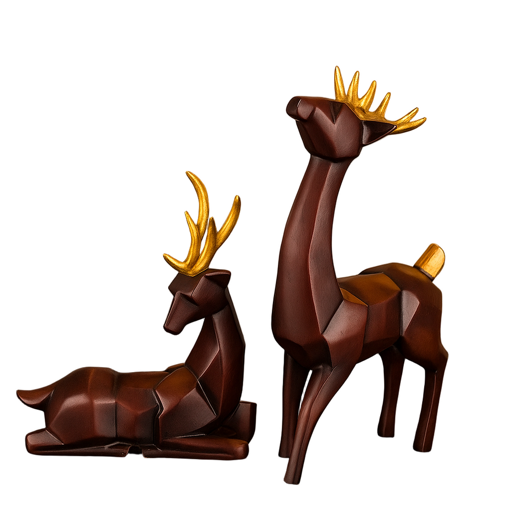 DNA eStore’s Modern Deer Statue Set is a premium home styling product in high-quality polyresin, featuring a deep matte brown finish and gold-accented detailing. This geometric deer pair serves as a luxury home accent that blends contemporary design with symbolic elegance — perfect for modern interiors, offices or gifting.