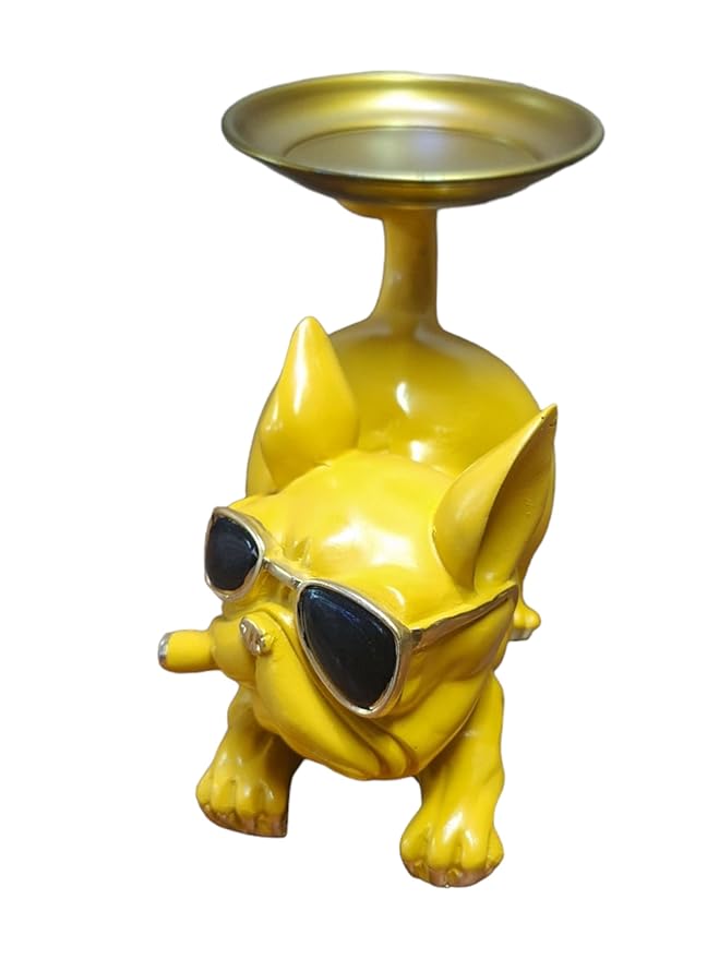 Add a playful twist to your interiors with this charming Polyresin Dog Platter On Tail Decor Showpiece. Uniquely designed with the platter resting on the raised tail of a quirky dog figurine, this decorative piece brings both functionality and fun to your d cor. Perfect for holding small items like keys, candies, potpourri, or just as a whimsical accent on its own. nCrafted from high quality polyresin, this durable and lightweight showpiece is suitable for interior d cor, office desks, living rooms, gardens, and gifting. Its eye catching design makes it a great conversation starter and a thoughtful present for dog lovers and design enthusiasts.