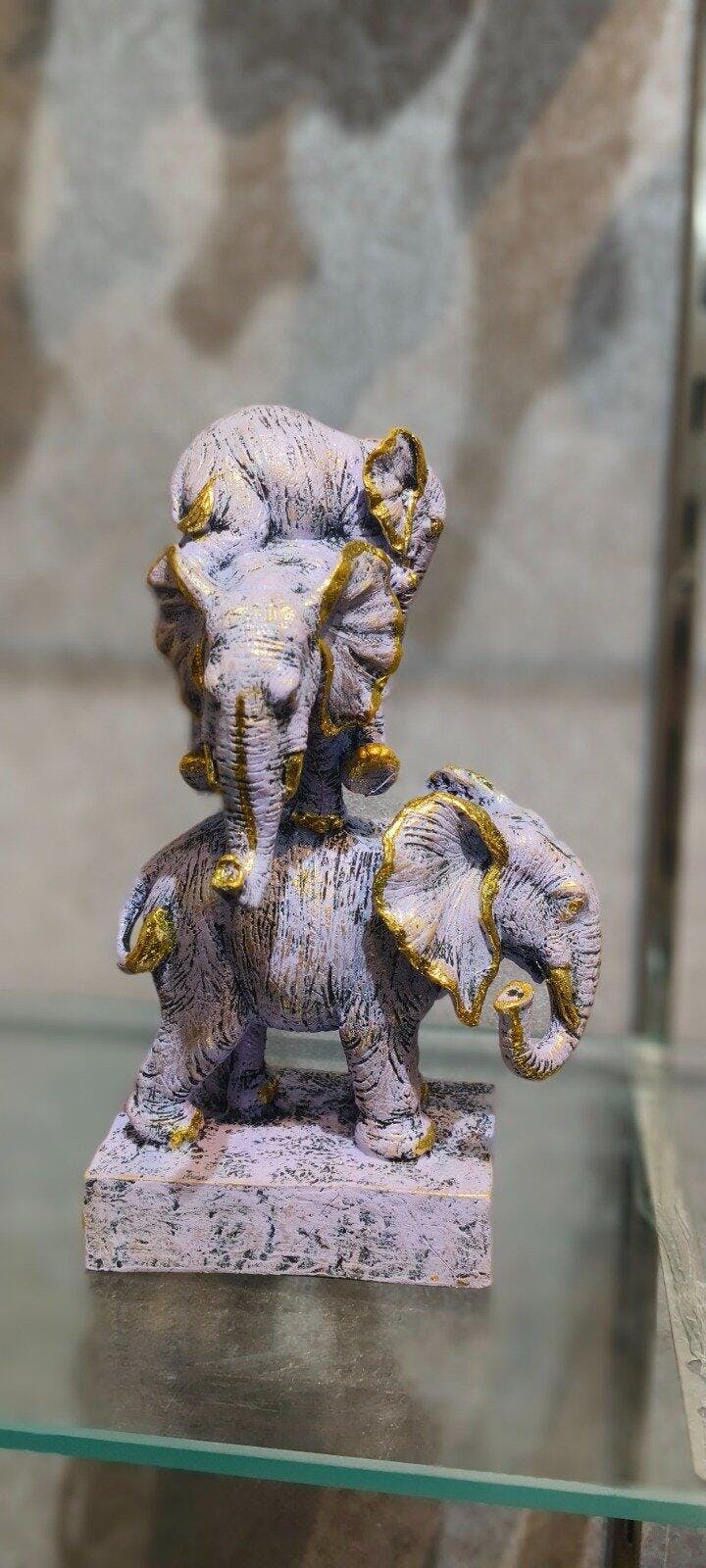 Add a symbol of strength, protection, and tradition to your living space with this twin elephant decor sculpture. Designed in an antique purple hue with golden accents, this artistic resin piece features two elephants—one sitting atop the other—capturing the spirit of family connection and upward movement.