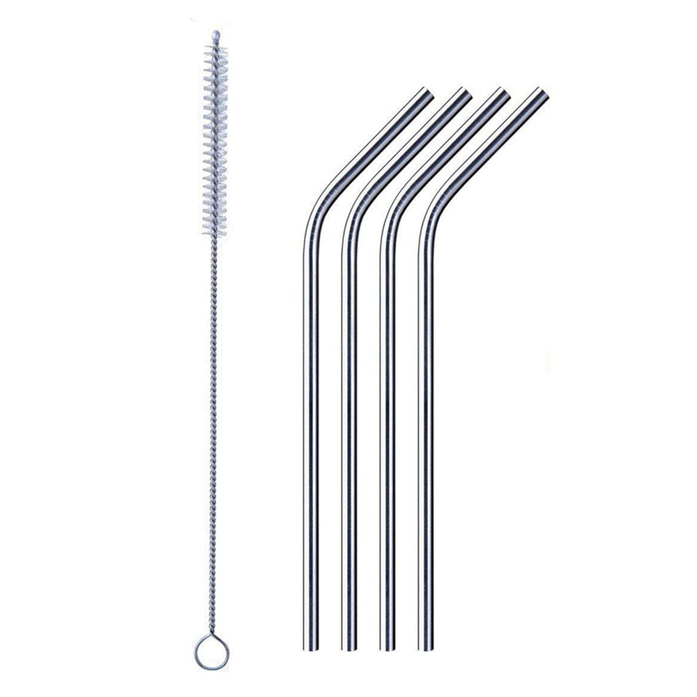 Reusable Stainless Steel 4 pieces Bent Straw with cleaning Brush