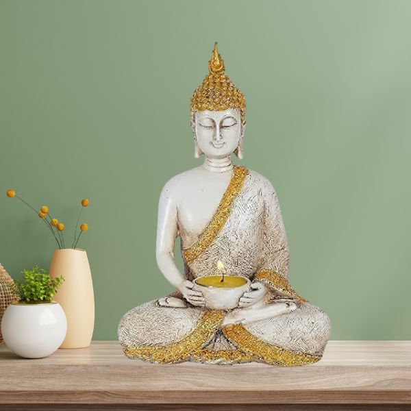 The Sitting Buddha Showpiece brings a sense of peace and balance to your surroundings. Whether used as a centerpiece in your living room, office, or meditation space, it promotes relaxation and mindfulness. This elegant statue creates a calming atmosphere that encourages reflection, making it the perfect addition to any modern or traditional home decor.